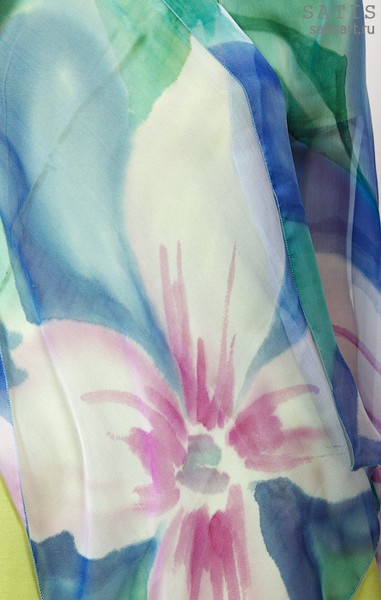 Эксклюзивные изделия из шелкаПалантинСтрана производства: РоссияБренд: SatisТехника: батик, ручная росписьСостав: 100% натуральный шелкТкань: газ-шифонЦвет: синийРазмеры: 54 х 180 см