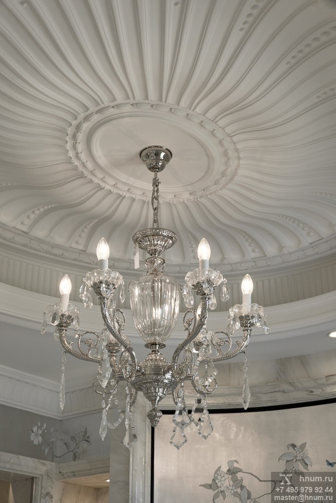 Новые выполненные работы и изделия, новые возможности. 2021 годТакже вы может следить за новостями на наших профилях в соцсетях и сервисах:Лето 2021 г. Лестница из массива венге с металлическим ограждением и инкрустацией, с подступёнками из каменной мозаики в двухуровневой квартире в центре Москвы.Эксклюзивная уникальная лестница была создана для двухуровневой квартиры в центре Москвы. Уникальность лестницы заключается в гармоничном сочетании различных материалов и технологий. Деревянные ступени выполнены из массива венге с красивой уникальной текстурой. Поручни и опорные столбы выполнены из массива клёна с отделкой под венге. Подступёнки оформлены каменной мозаикой из различных декоративных пород камня. Балясины лестничного ограждения, декоративные элементы выполнены из латуни точением и литьём, и дополнительно имеют матовое никелирование поверхности. Также из никелированной латуни выполнена инкрустация деревянных столбов и поручней. ![]() Подробнее о лестнице из массива венге с металлическим ограждением и инкрустацией, с подступёнками из каменной мозаики в двухуровневой квартире в центре Москвы... Лето 2021 г. Лепной плафон и потолочный декор в ванной комнате в квартире в центре Москвы.Лепной плафон на потолке в мастер-ванной комнате является одним из наиболее значимых элементов декоративного оформления интерьера помещения. Плафон занимает основное пространство потолка, имеет овальную форму и делит потолок на несколько уровней. Практически всю внутреннюю часть лепного плафона занимает большая лепная розетка под люстру. повторяющая овальную форму плафона и по сути представляющая собой антикупол (купол понижающийся от края к центру). Элементы розетки - радиальные "лепестки" сложного профиля, к тому же образующие овал. ![]() Подробнее о Лепном плафоне и потолочном декоре в ванной комнате в квартире в центре Москвы... Лето 2021 г. Лепной потолочный декор в гостиной в квартире в центре Москвы.Эксклюзивный лепной гипсовый декор для оформления потолка в гостиной-столовой-кухне в квартире в центре Москвы был разработан и выполнен нашими мастерами и дизайнерами. Лепной декор выполнен в стиле современная классика. Стык стен и потолка оформлены потолочными карнизами и молдингами. На потолке выполнены несколько многоуровневых плафонов со скрытой подсветкой. Внутри плафонов выполнены сложные нарядные розетки оформляющие основания люстр. Лепнина разрабатывалась и создавалась индивидуально для этого интерьера - от эскизов и лепки пластилиновых моделей, до изготовления в гипсе. ![]() Подробнее о лепном потолочном декоре в гостиной в квартире в центре Москвы.... Лето 2021 г. Лепной декор в спальне в квартире в центре Москвы.Изящный лепной декор для оформления спальни (мастер-спальни) был разработан и воплощён нашими художниками и мастерами исключительно для этого интерьера. Лепниной декорированы потолок и стены спальни. Лепной декор выполнен в классическом стиле - современная классика. В центре потолка выполнена большая декоративная розетка под люстру с богатым растительным орнаментом. Нашими мастерами и художниками-дизайнерами выполнены как работы по разработке и дизайну лепнины, так и изготовление, установочно-монтажные работы и отделка лепного декора. ![]() Подробнее о лепном декоре в спальне в квартире в центре Москвы.... Лет