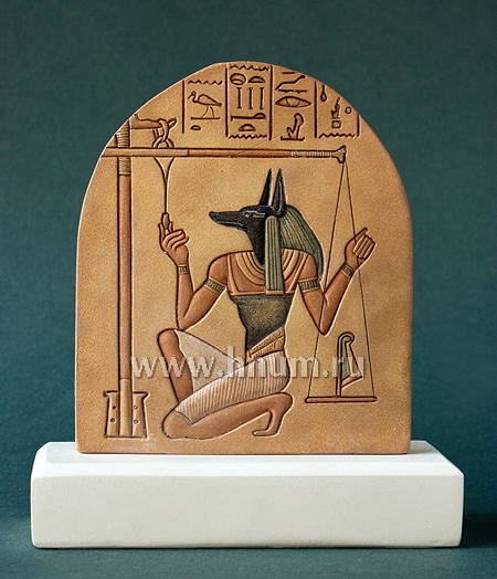| АНУБИС (цветной вариант)реплика Древний Египет XIX династия. XIII в. до н.э. Оригинал: Папирус Ани Лондон, Британский музей 16 х 15 см Выс. с подставкой 20 см |